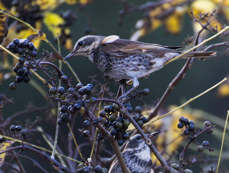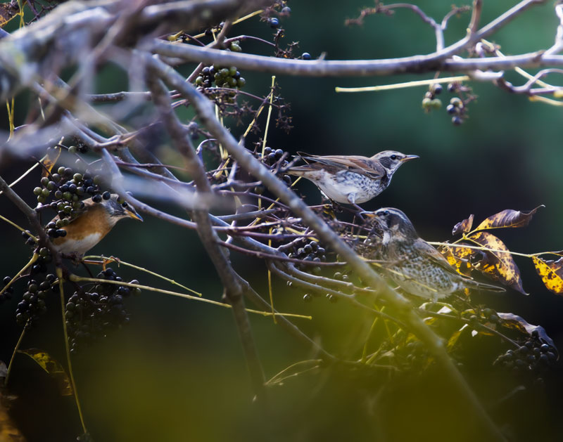 ちょうどツグミが群れで食べにきていました