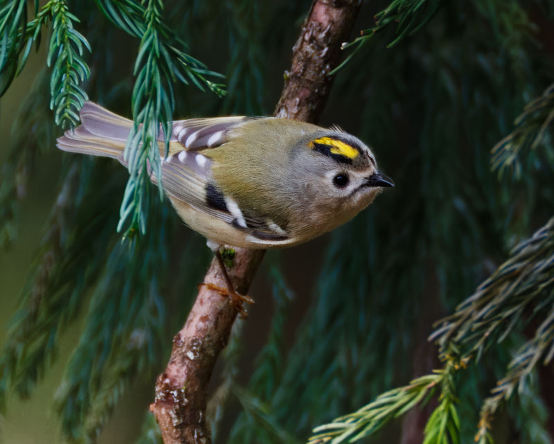 キクイタダキはその小ささと愛らしい姿から「森の妖精」とも呼ばれ、バードウォッチングでも人気の高い鳥です。