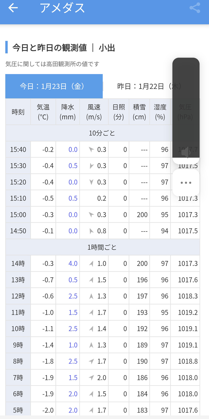 アメダスでは昨夜から15センチくらいの降雪とあったけど